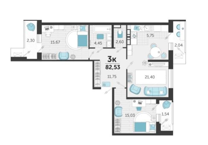 Продается 3-х комн. новостройка, 82.53 кв.м., 16/24 эт