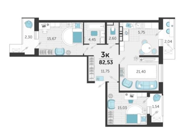 Продается 3-х комн. новостройка, 82.53 кв.м., 12/24 эт