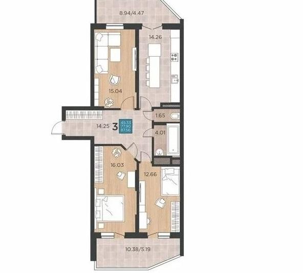 Продается 3-х комн. новостройка, 87.47 кв.м., 12/17 эт
