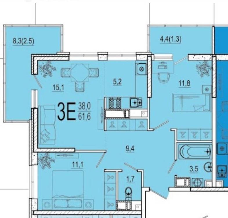 Продается 2-х комн. новостройка, 61.6 кв.м., 7/23 эт