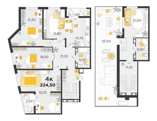 Продается 4-х комн. новостройка, 224.5 кв.м., 24/24 эт