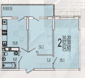 Продается 2-х комн. новостройка, 54.6 кв.м., 10/23 эт