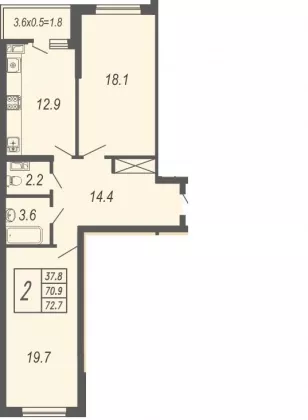Продается 2-х комн. новостройка, 72.7 кв.м., 8/19 эт