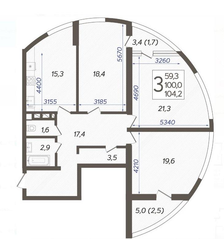 Продается 3-х комн. новостройка, 104.2 кв.м., 15/24 эт