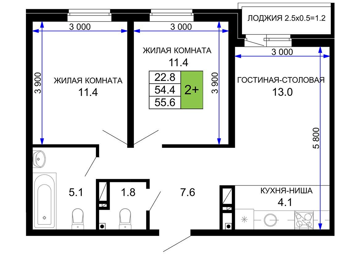 Продается 2-х комн. новостройка, 55.6 кв.м., 8/22 эт
