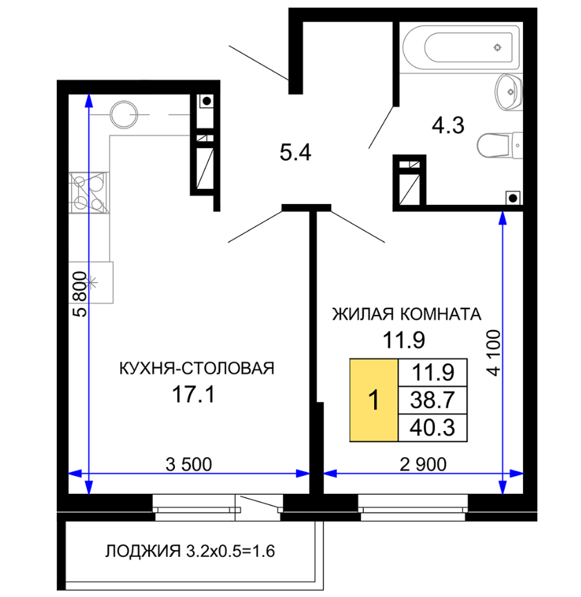 Продается однокомнатная новостройка, 40.3 кв.м., 14/24 эт