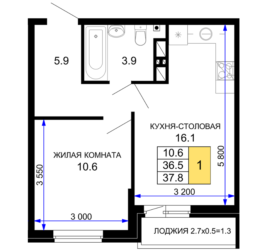 Продается однокомнатная новостройка, 37.8 кв.м., 10/24 эт