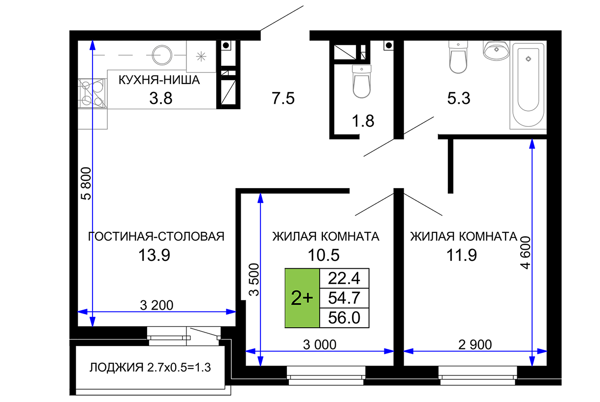 | Площадь, кв.м. | 56 |
