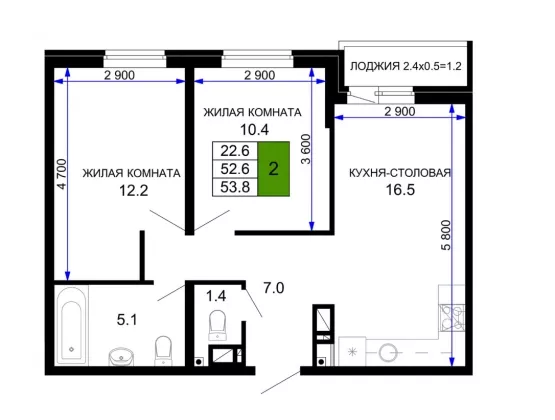 Продается 2-х комн. новостройка, 53.8 кв.м., 13/16 эт