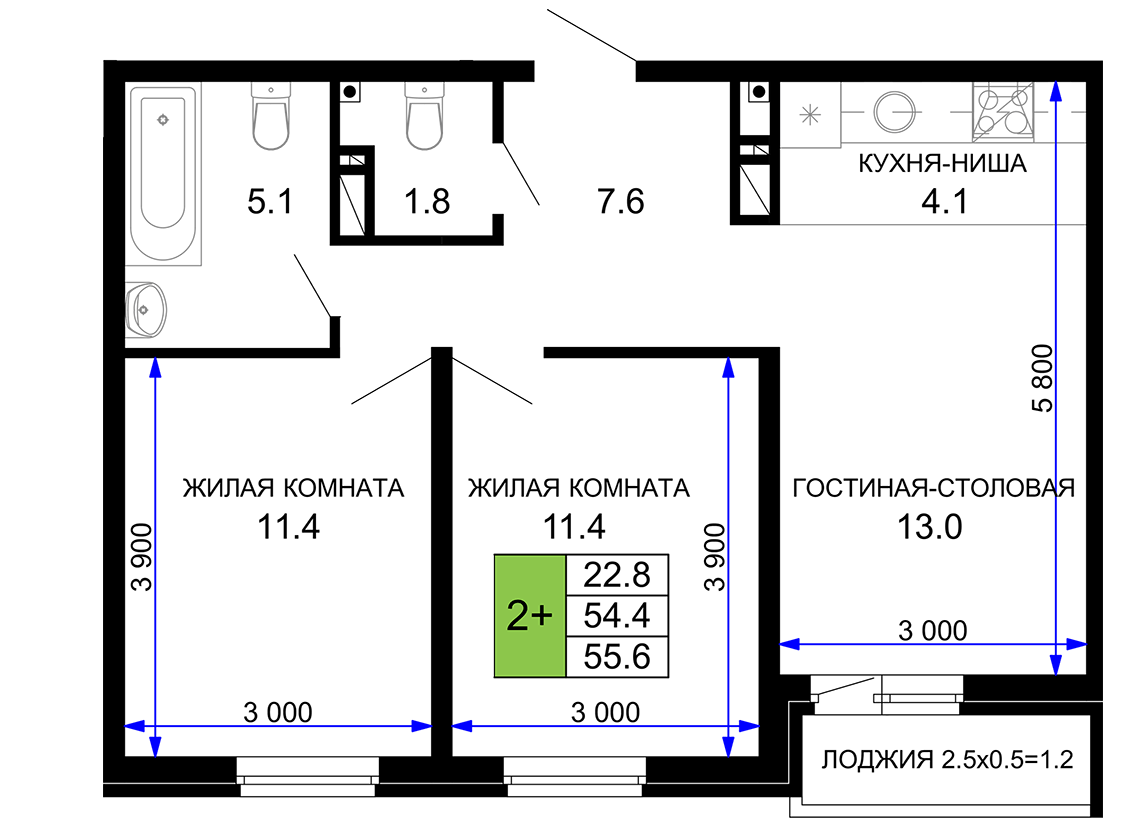 | Площадь, кв.м. | 55.6 |