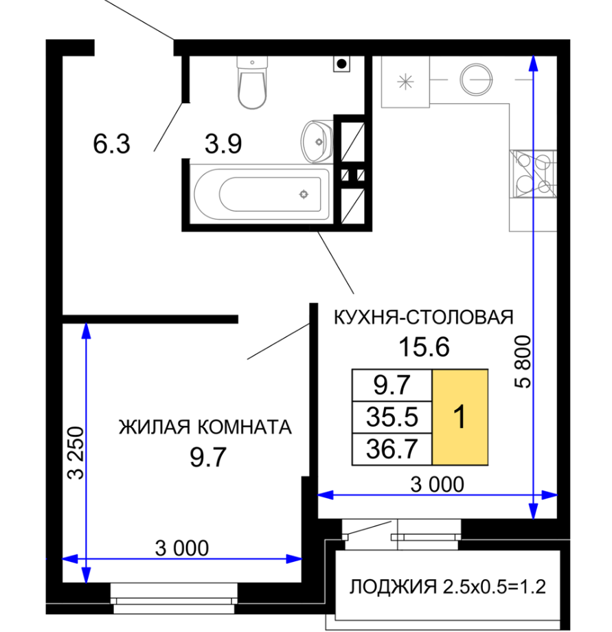 Продается однокомнатная новостройка, 36.7 кв.м., 10/16 эт