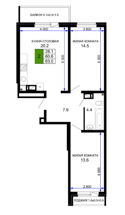 Продается 2-х комн. новостройка, 63 кв.м., 11/16 эт