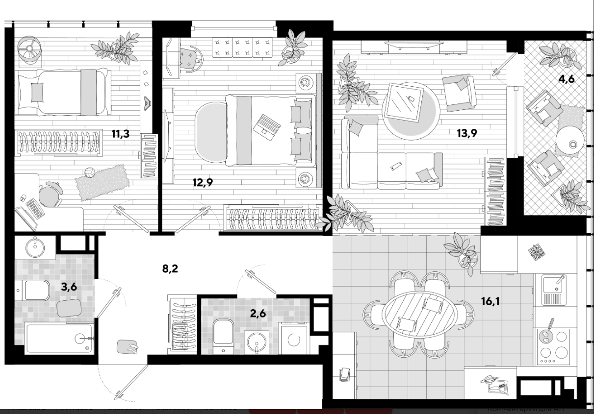 Продается 3-х комн. новостройка, 71 кв.м., 13/16 эт
