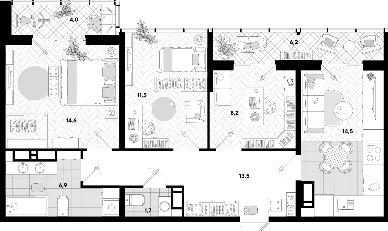 Продается 3-х комн. новостройка, 71 кв.м., 14/16 эт