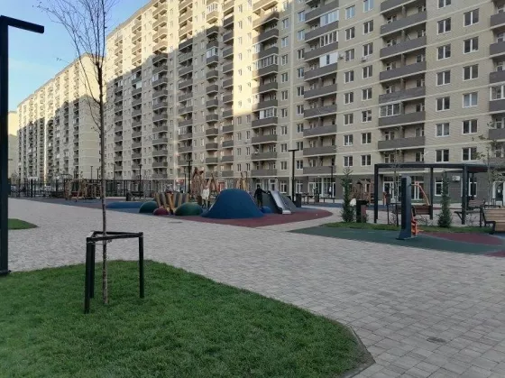 Чистый воздух, высажен молодой яблоневый сад, красивая аллея с зонами отдыха. Много парковочных мест, двор вымощен плиткой, красочные безопасные детские площадки ограждены от проезжей части. По соседству красивый элитный коттеджный посёлок.