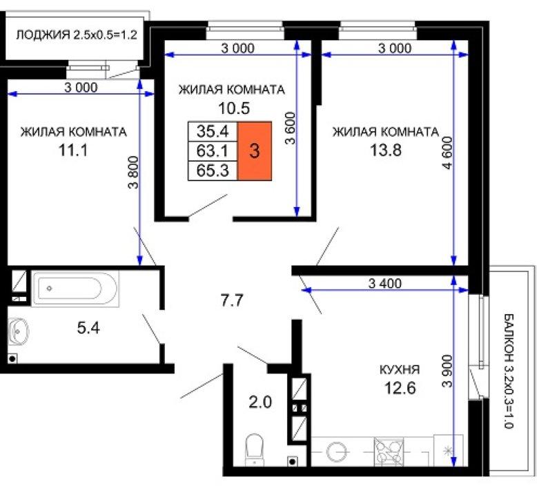 Продается 3-х комн. новостройка, 55.2 кв.м., 3/16 эт