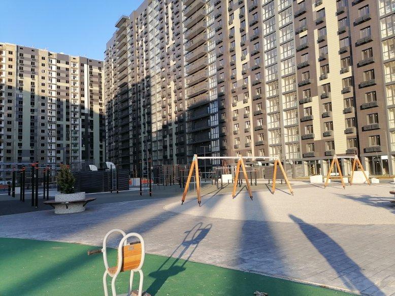 Ландшафтное озеленение, зоны для отдыха, детские и спортивные площадки, скейт-парк, сквер, площадки для питомцев, свой детский сад. Уютные подъезды с колясочными.