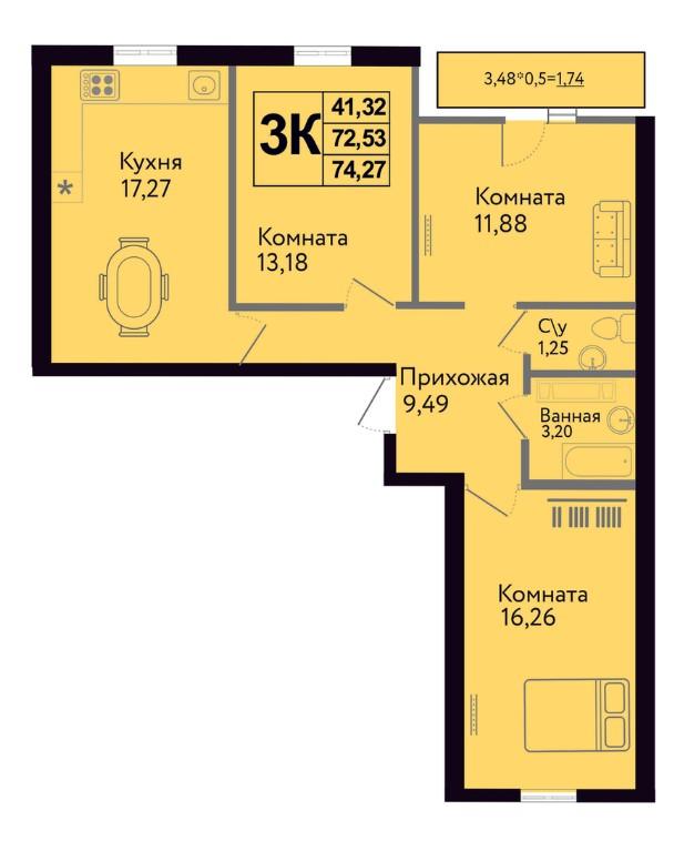 | Площадь, кв.м. | 74.27 |