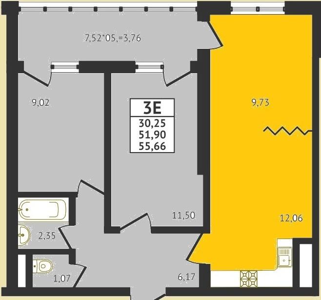 Продается 3-х комн. новостройка, 59 кв.м., 15/17 эт
