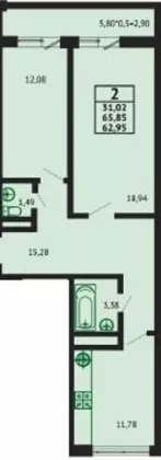 В продаже супер 2 комнатная квартира «бабочка», большая ленточная лоджия