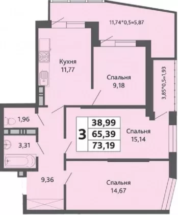 Продается 3-х комн. новостройка, 73.19 кв.м., 2/19 эт