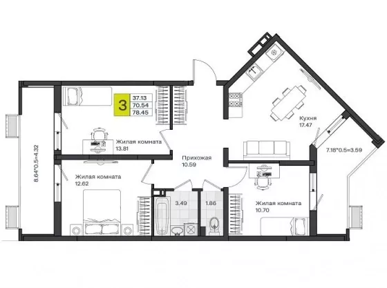 Продается 3-х комн. новостройка, 78.5 кв.м., 6/8 эт