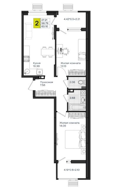 | Комнат в квартире | 2 |