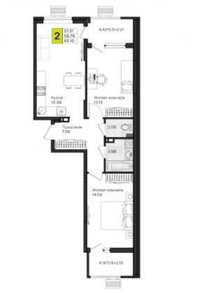 Продается 2-х комн. новостройка, 64 кв.м., 7/8 эт