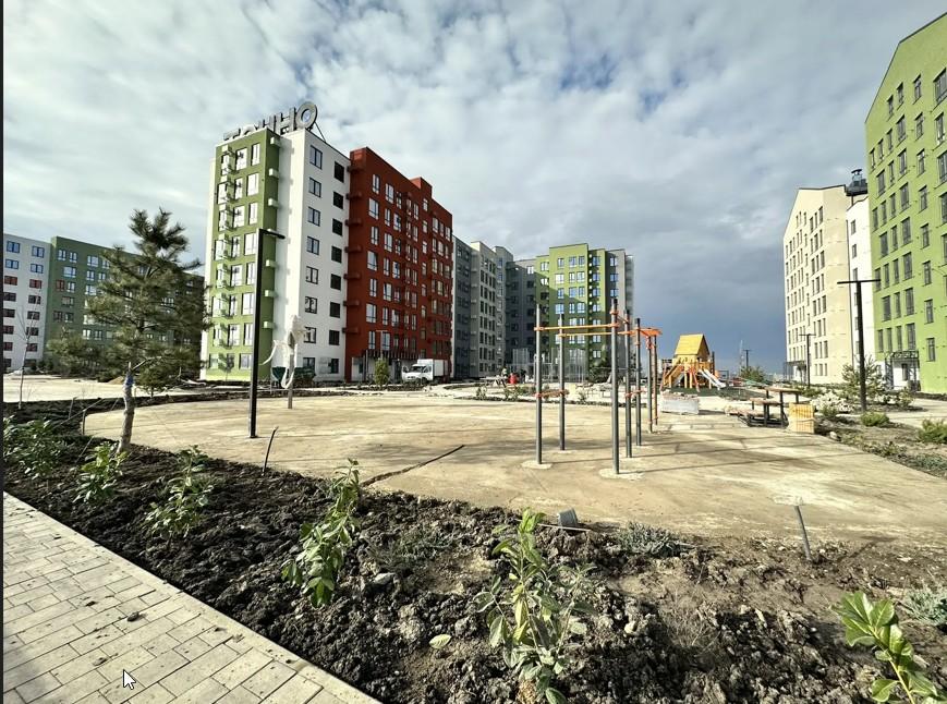 Во дворе предусмотрены современные  детские площадки с   безопасным покрытием, воркаут зоны, ландшафтное озеленение с зелёными газонами и кустарниками, уютные дворы без машин.