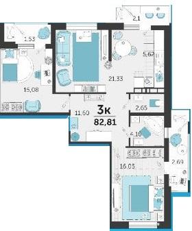 Продается 3-х комн. новостройка, 82.81 кв.м., 15/24 эт