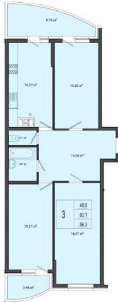 Продается 3-х комн. новостройка, 89 кв.м., 12/19 эт