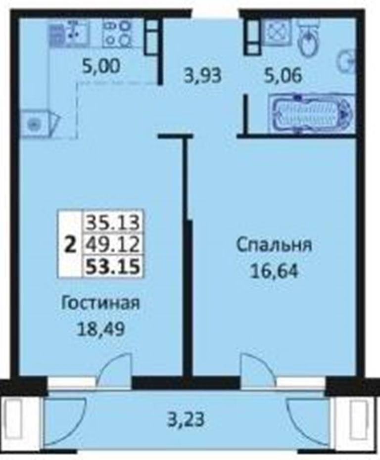 Продается 2-х комн. новостройка, 53 кв.м., 13/25 эт