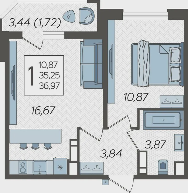 Продается однокомнатная новостройка, 36.97 кв.м., 14/21 эт