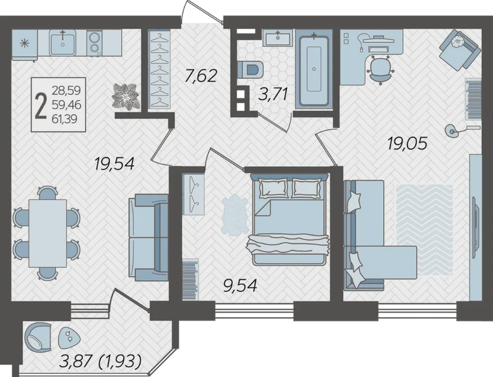 Продается 2-х комн. новостройка, 61.39 кв.м., 8/21 эт