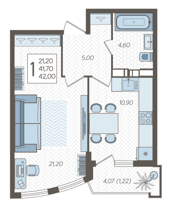 Продается однокомнатная новостройка, 42 кв.м., 8/21 эт