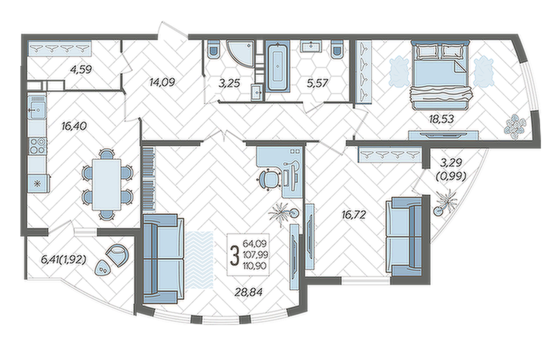 Продается 3-х комн. новостройка, 110 кв.м., 15/21 эт