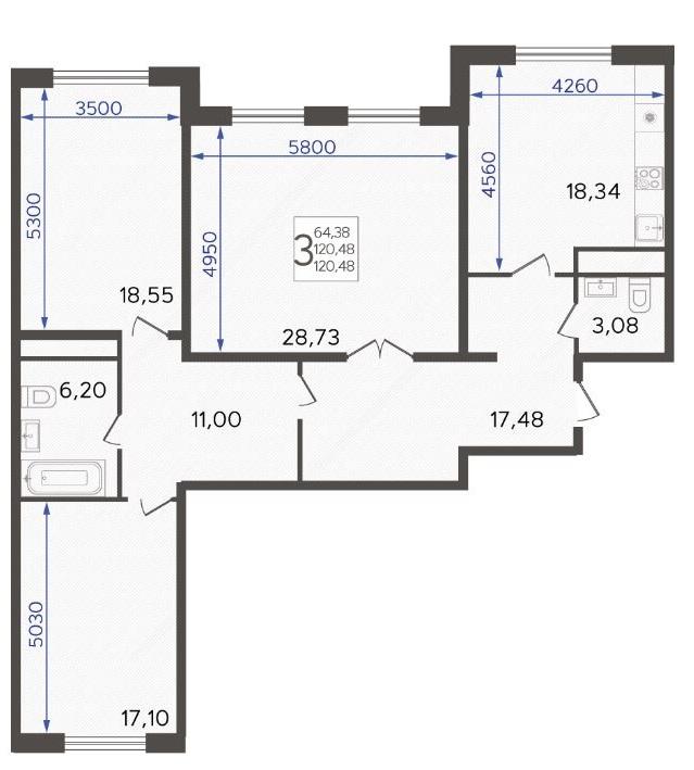 Продается 3-х комн. новостройка, 120 кв.м., 3/22 эт