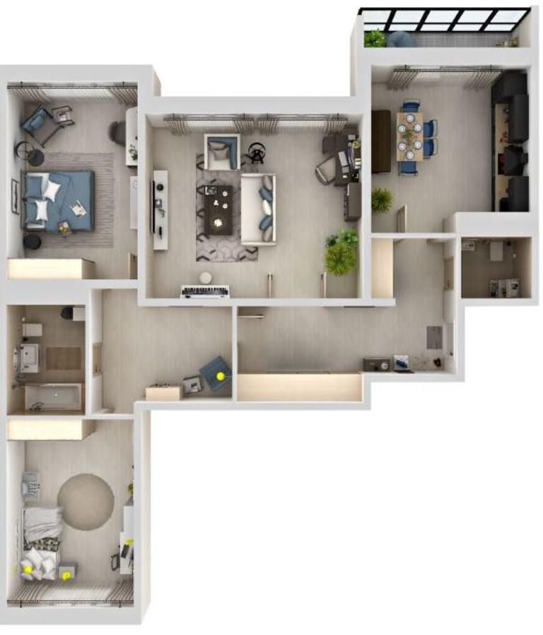 Трёхкомнатная квартира для большой , расположенного в центральной части города! Фасад дома вентилируемый из керамогранита. Предчистовая отделка квартиры, панорамное остекление.