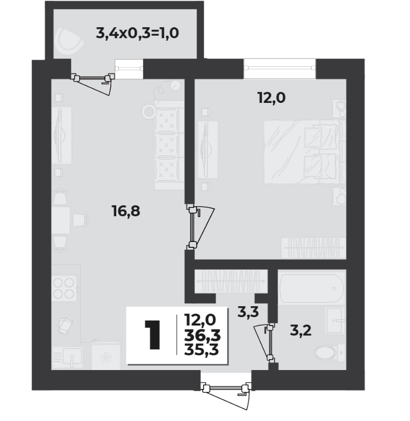 | Площадь, кв.м. | 36.3 |