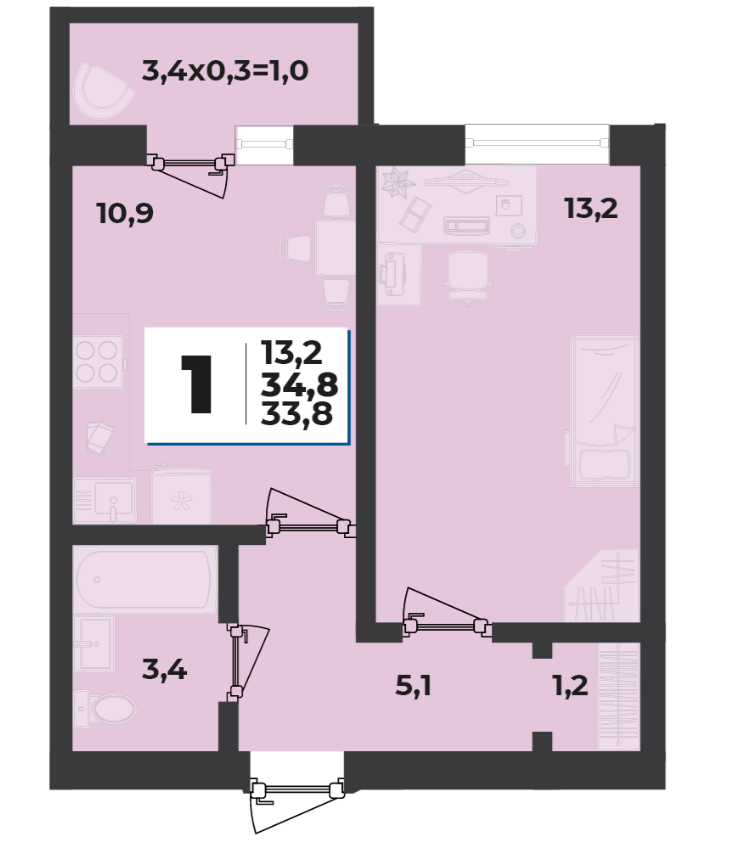 Продается однокомнатная новостройка, 34.8 кв.м., 5/5 эт