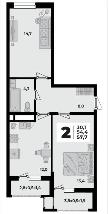 Продается 2-х комн. новостройка, 57.7 кв.м., 4/5 эт