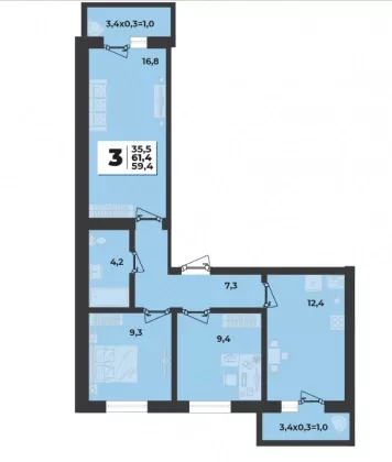 Продается 3-х комн. новостройка, 61.4 кв.м., 5/5 эт