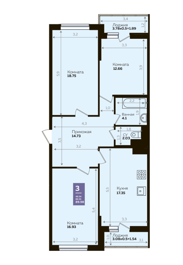 Продается 3-х комн. новостройка, 86.6 кв.м., 12/24 эт