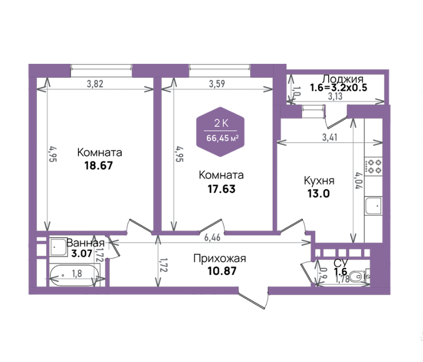 Продается 2-х комн. новостройка, 66.45 кв.м., 10/24 эт