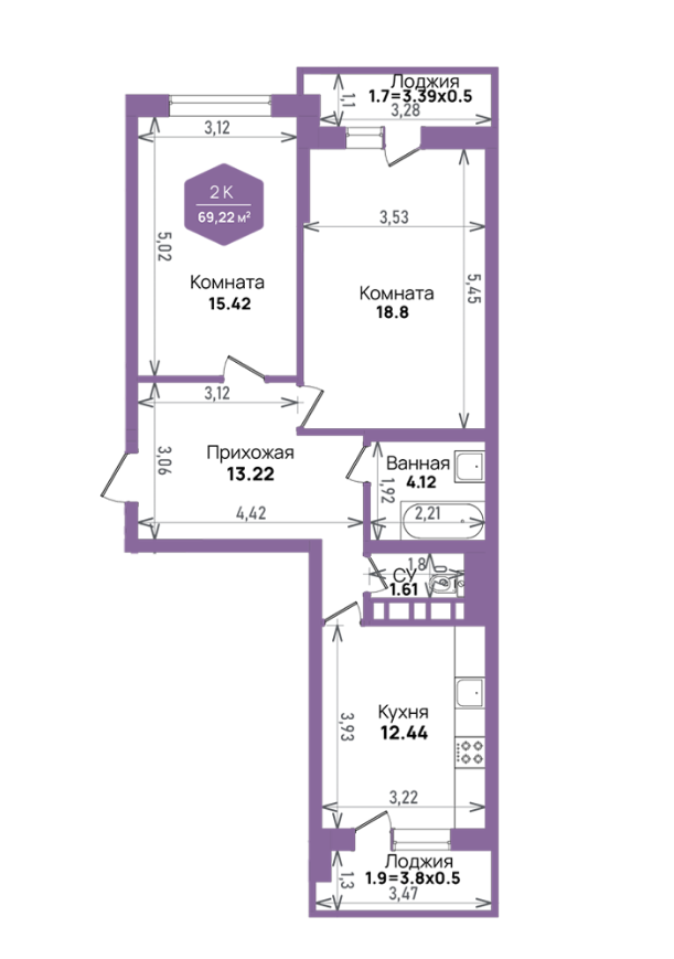 | Площадь, кв.м. | 69.2 |