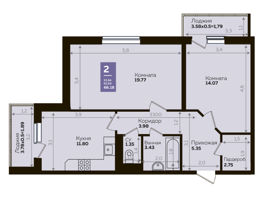 Продается 2-х комн. новостройка, 66.18 кв.м., 7/24 эт