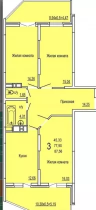 Продается 3-х комн. новостройка, 87.56 кв.м., 11/17 эт