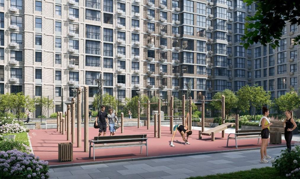 На территории комплекса есть игровые комплексы и спортивные площадки с безопасным покрытием. Школа на 1 725 мест и 5 детских садов по 310−350 мест каждый. Качественное образование от детского сада до выпускного класса.
