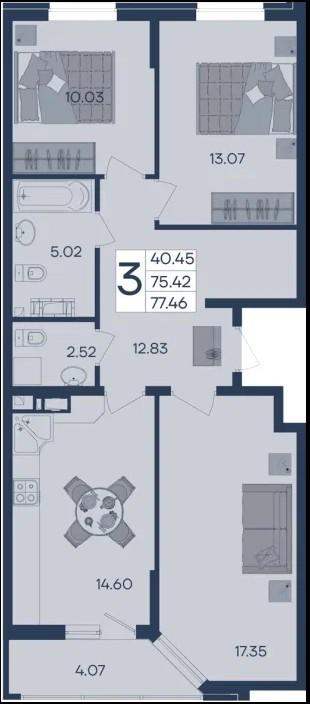 | Площадь, кв.м. | 77.46 |