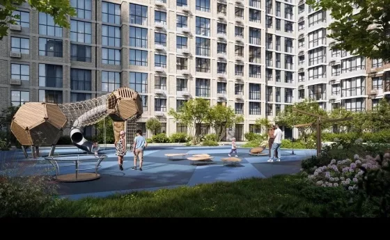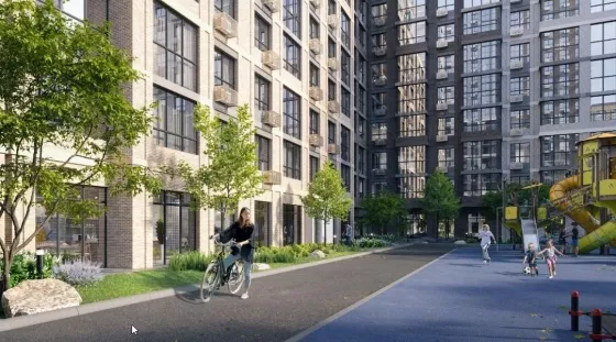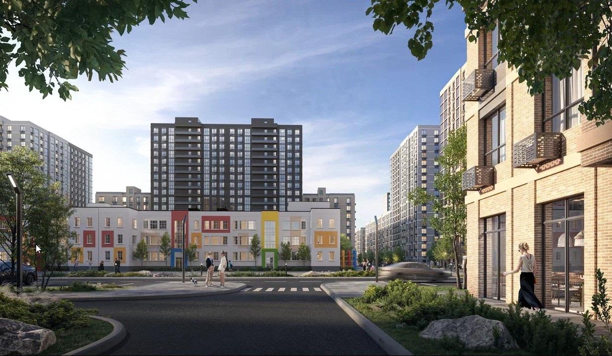 На территории комплекса есть игровые комплексы и спортивные площадки с безопасным покрытием. Школа на 1 725 мест и 5 детских садов по 310−350 мест каждый. Качественное образование от детского сада до выпускного класса.
